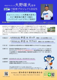「中日ドラゴンズ 大野雄大投手招待プロジェクト2025 -Yudai’s Invitation Project 5月」の続きを読む